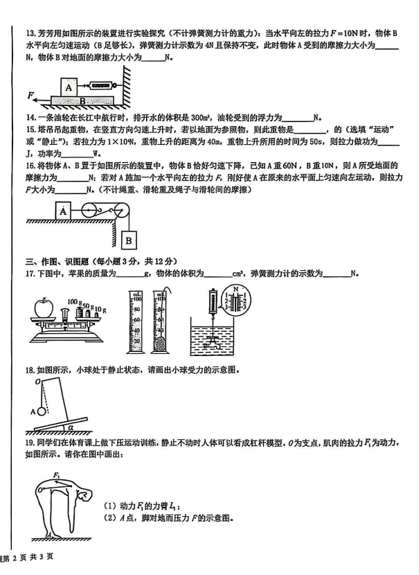 2024-2025学年甘肃兰州八十一中学八年级下册物理期末真题(图片版)(4)
