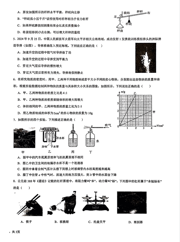 2024-2025学年甘肃兰州三十五中学八年级下册物理期末真题(图片版)(2)