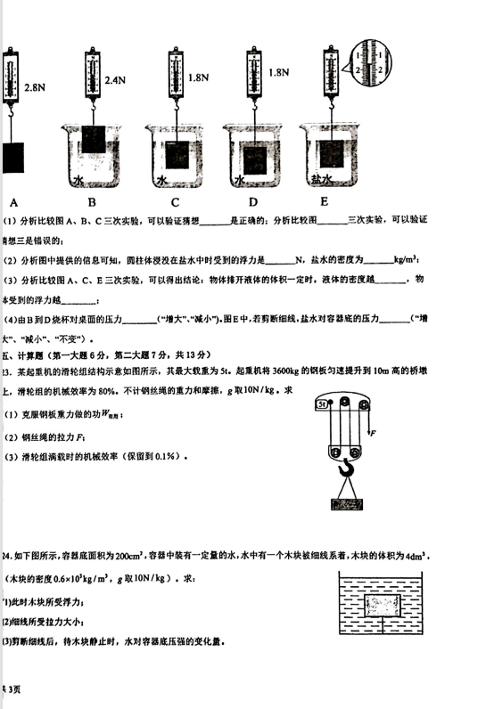 2024-2025学年甘肃兰州三十五中学八年级下册物理期末真题(图片版)(5)