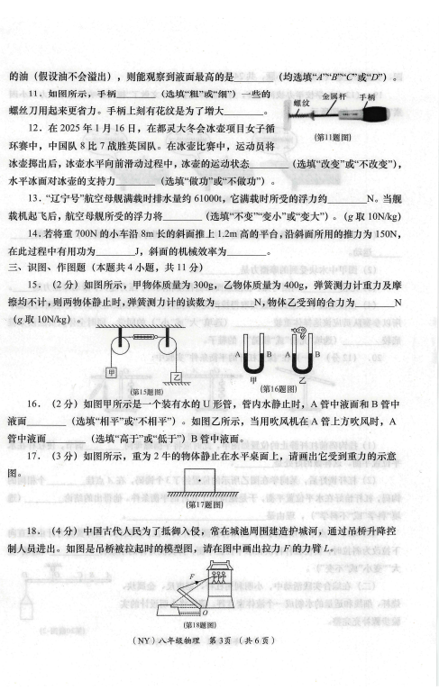 2024-2025学年甘肃陇南康县八年级下册物理期末真题(图片版)(3)