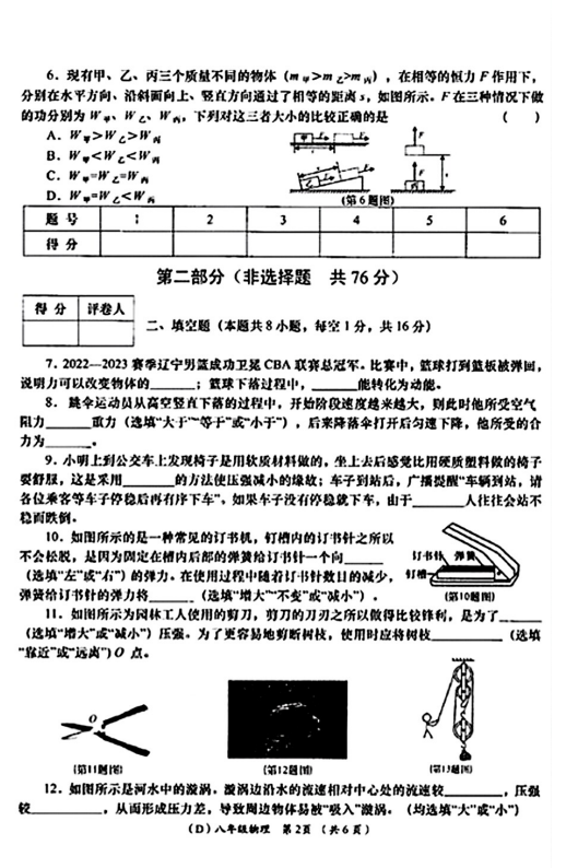 2024-2025学年甘肃陇南礼县县八年级下册物理期末真题(图片版)(2)