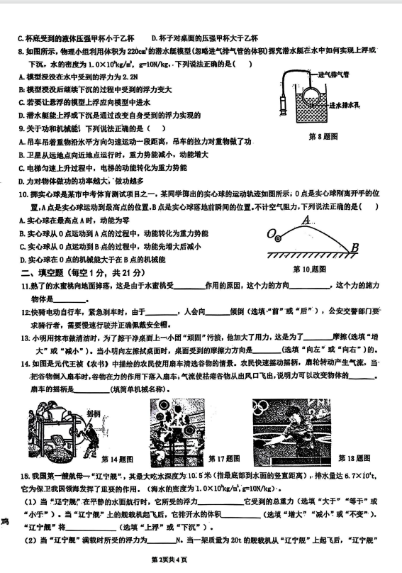 2024-2025学年甘肃武威凉州区八年级下册物理期末真题(图片版)(2)