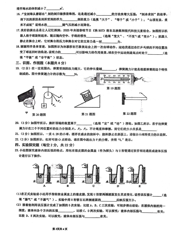2024-2025学年甘肃武威凉州区八年级下册物理期末真题(图片版)(3)