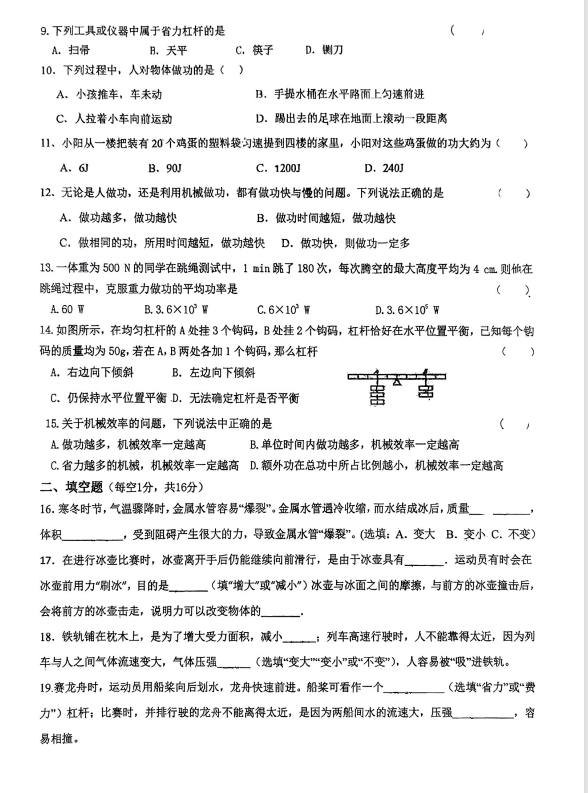 2024-2025学年甘肃张掖甘州中学八年级下册物理期末真题(图片版)(2)