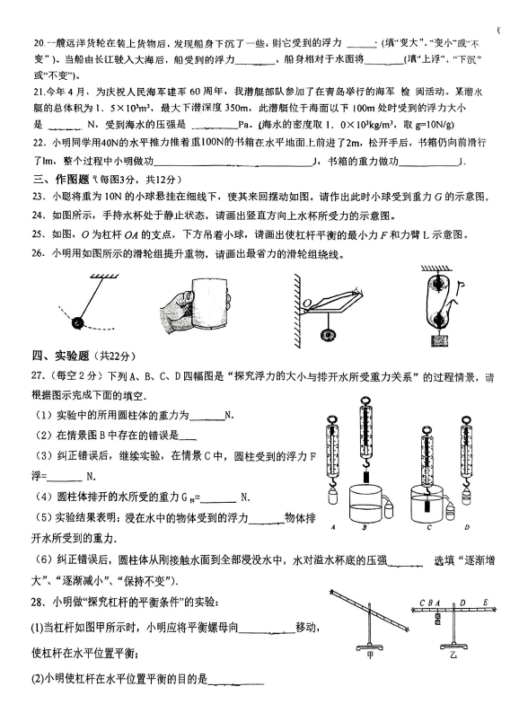 2024-2025学年甘肃张掖甘州中学八年级下册物理期末真题(图片版)(3)