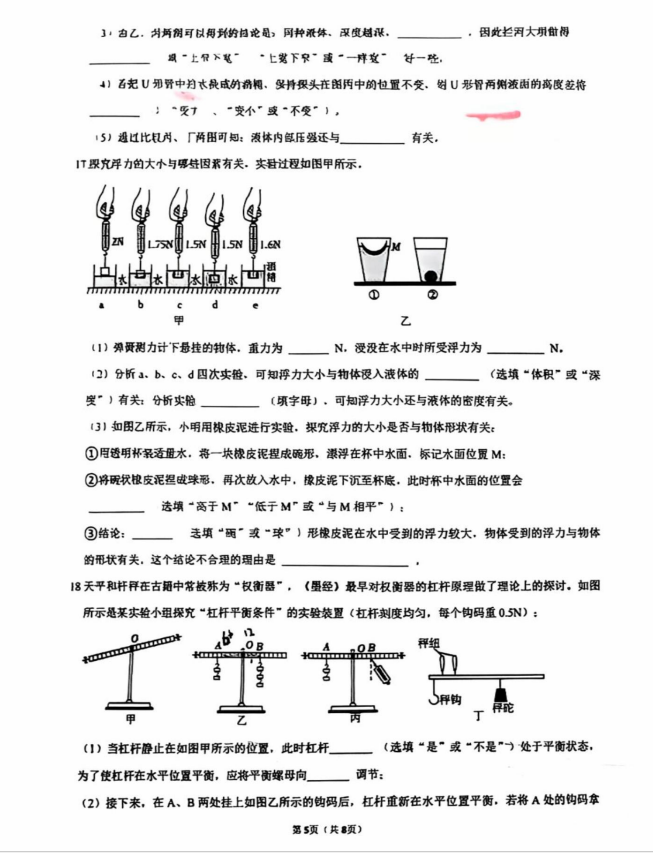 2024-2025学年广东惠城新安学校八年级下册物理期末真题(图片版)(5)