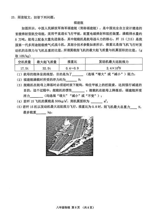 2024-2025学年广东江门鹤山八年级下册物理期末真题(图片版)(8)