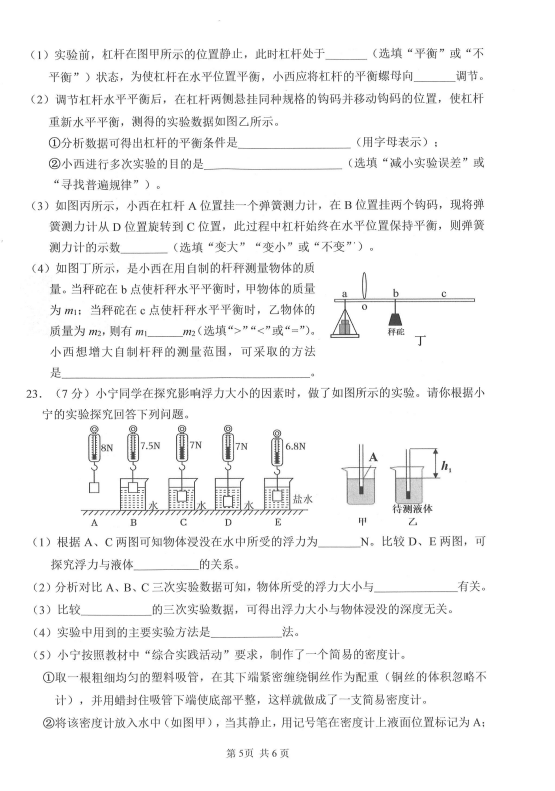 2024-2025学年广西南宁西乡塘八年级下册物理期末真题(图片版)(5)