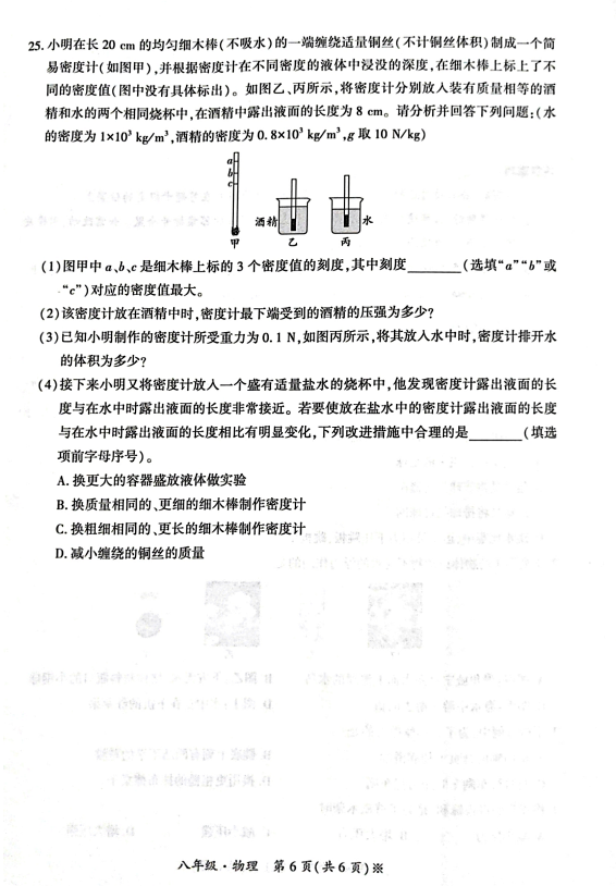 2024-2025学年贵州毕节大方县八年级下册物理期末真题(图片版)(6)