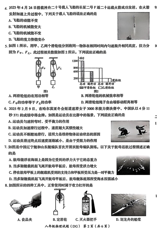 2024-2025学年河北沧州东光县八年级下册物理期末真题(图片版)(2)