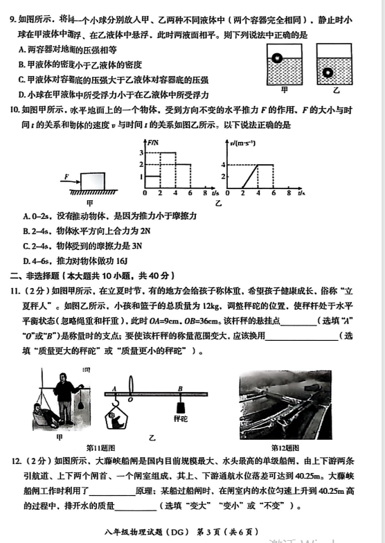 2024-2025学年河北沧州东光县八年级下册物理期末真题(图片版)(3)