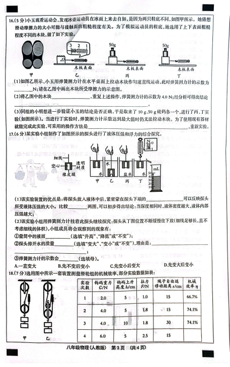 2024-2025学年河北沧州南皮县八年级下册物理期末真题(图片版)(3)
