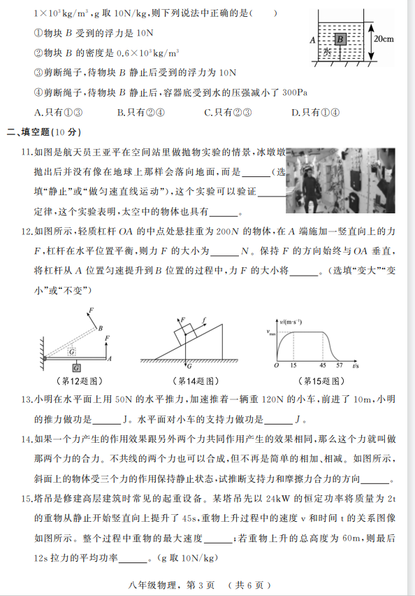 2024-2025学年河北衡水景县八年级下册物理期末真题(图片版)(3)
