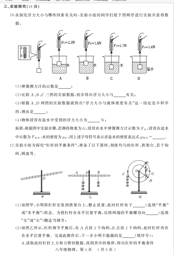 2024-2025学年河北衡水景县八年级下册物理期末真题(图片版)(4)