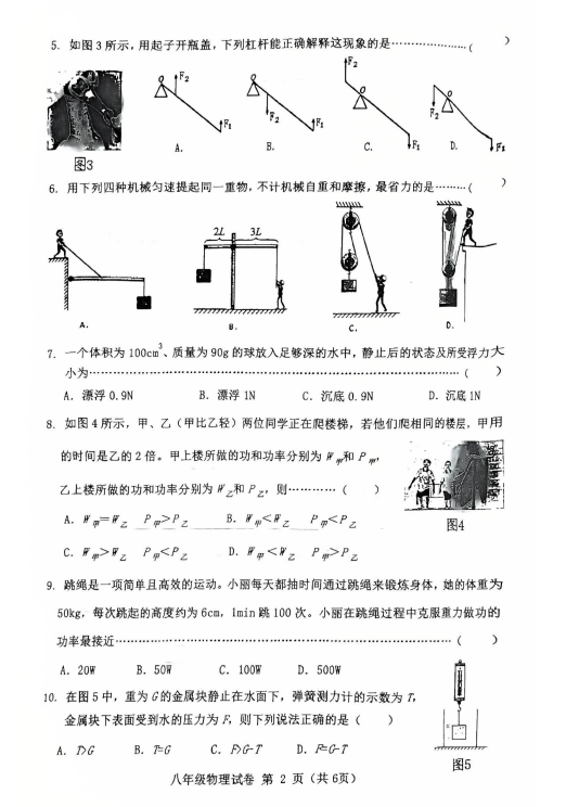 2024-2025学年河北秦皇岛昌黎县八年级下册物理期末真题(图片版)(2)