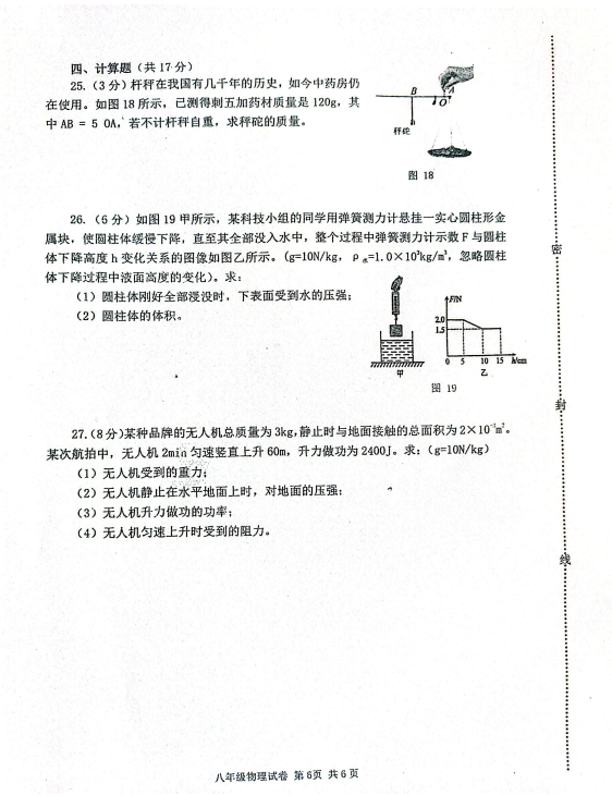 2024-2025学年河北秦皇岛海港区八年级下册物理期末真题(图片版)(5)