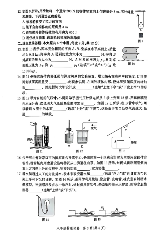 2024-2025学年河北唐山迁安八年级下册物理期末真题(图片版)(3)