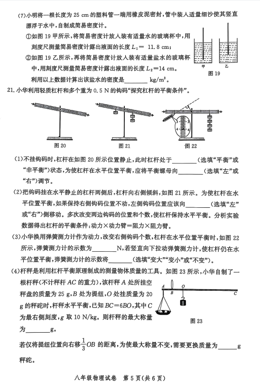 2024-2025学年河北唐山迁安八年级下册物理期末真题(图片版)(5)
