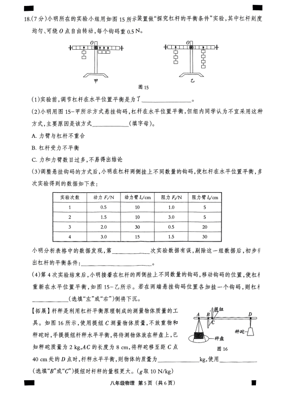 2024-2025学年河北张家口张北县八年级下册物理期末真题(图片版)(5)
