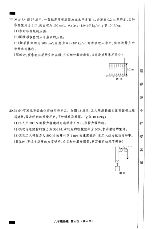 2024-2025学年河北张家口张北县八年级下册物理期末真题(图片版)(6)