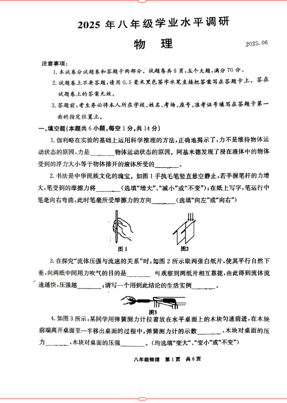 2024-2025学年河南辉县八年级下册物理期末真题(图片版)