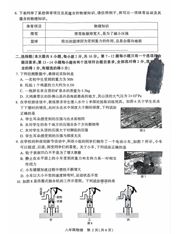 2024-2025学年河南许昌八年级下册物理期末真题(图片版)(2)