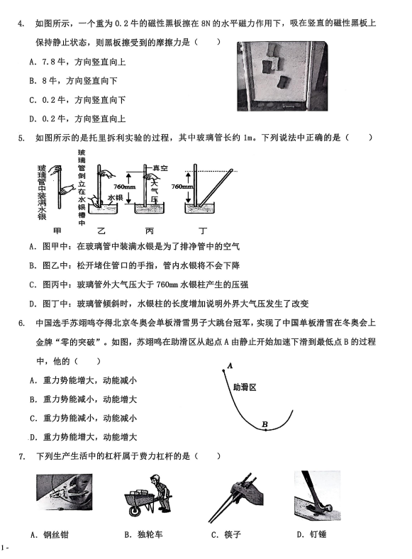 2024-2025学年黑龙江绥化明水县八年级下册物理期末真题(图片版)(2)