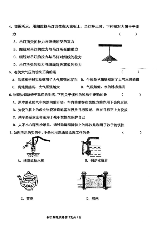 于2024-2025学年黑龙江绥化绥棱县八年级下册物理期末真题(图片版)(2)