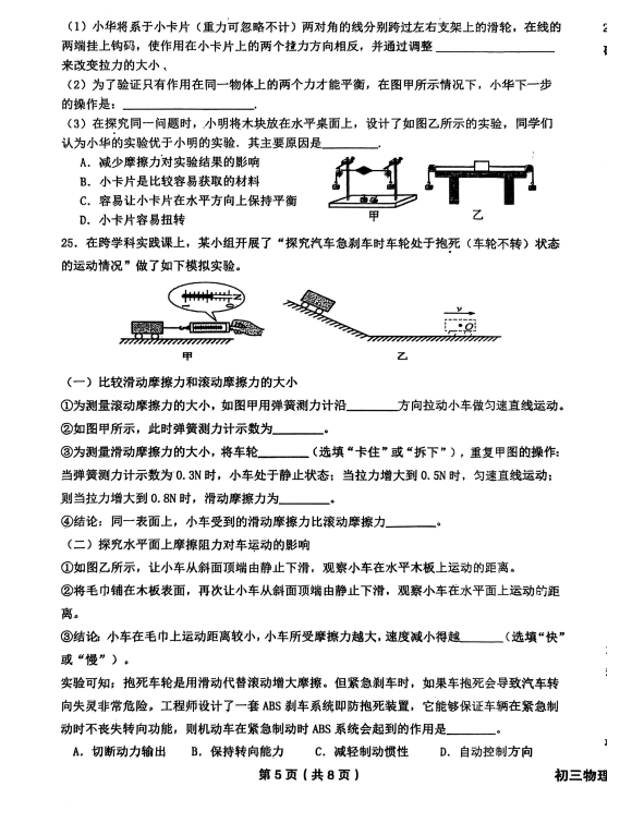 2024-2025学年黑龙江绥化望奎县八年级下册物理期末真题(图片版)(5)