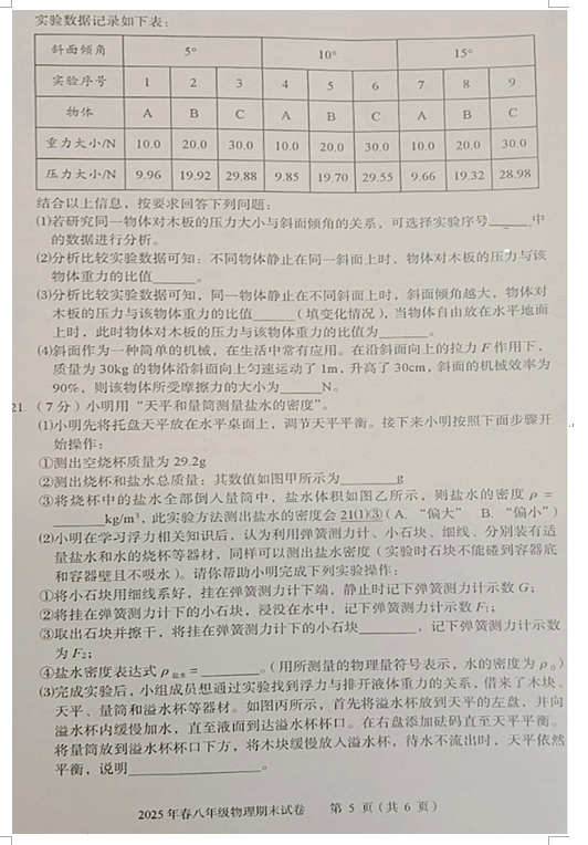 2024-2025学年湖北黄石大冶市八年级下册物理期末真题(图片版)(5)