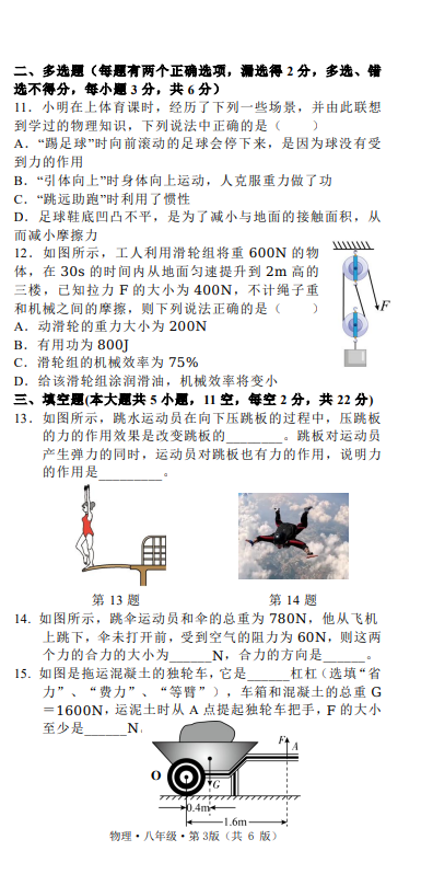 2024-2025学年湖南长沙特立学校八年级下册物理期末真题(图片版)(3)