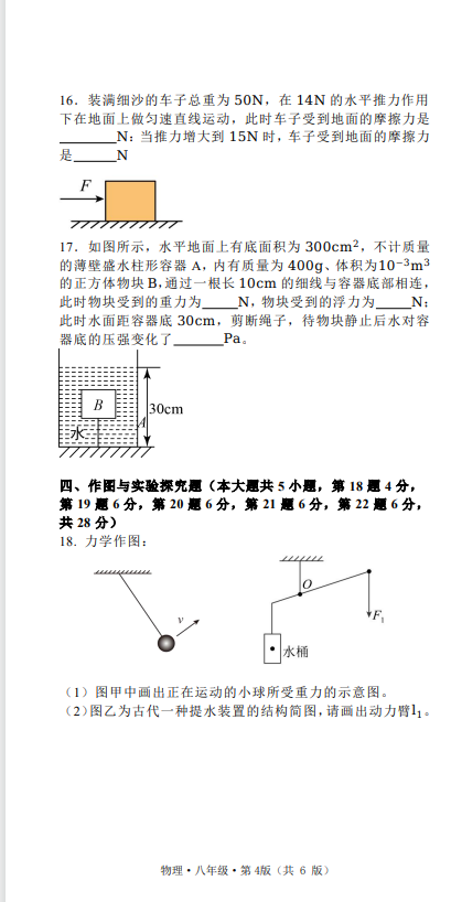 2024-2025学年湖南长沙特立学校八年级下册物理期末真题(图片版)(4)