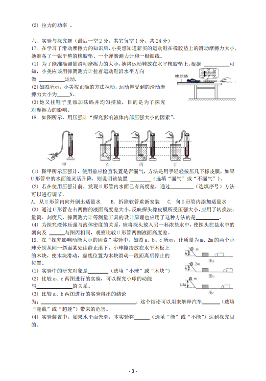 2024-2025学年吉林白山九中八年级下册物理期末真题(图片版)(3)