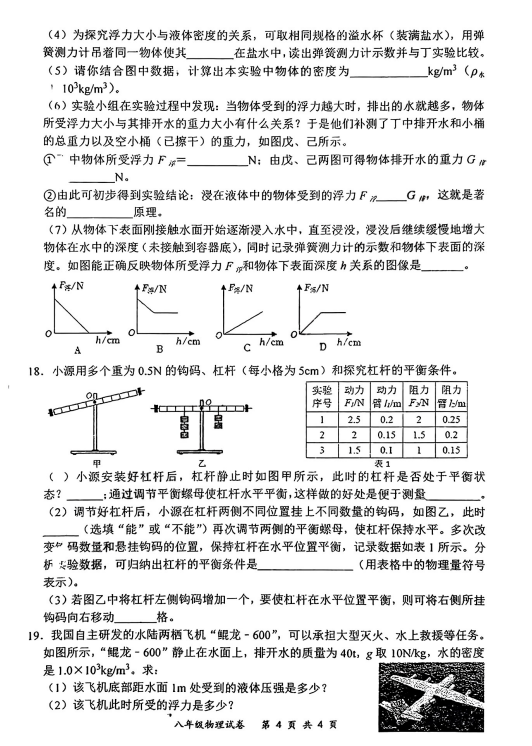 2024-2025学年吉林长春力旺实验中学八年级下册物理期末真题(图片版)(4)