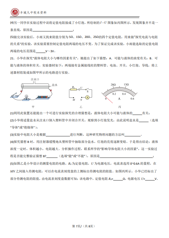 2024-2025学年江西宜春丰城九中八年级下册物理期末真题(图片版)(7)