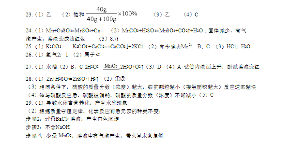 2016年广州市天河区初三一模化学答案(2)