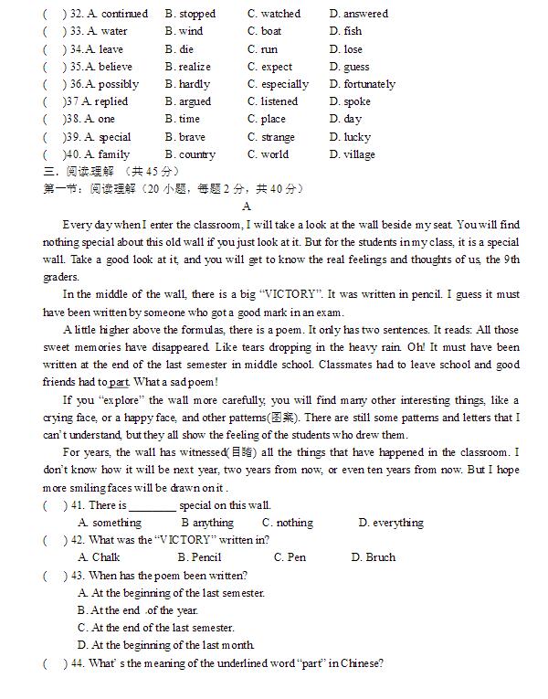 2015年上学期番禺区10月份六校联考英语试题(4)