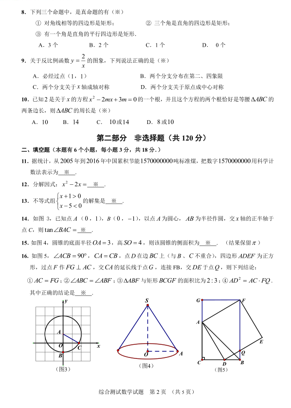 2017年广州市增城区中考一模数学试题(2)
