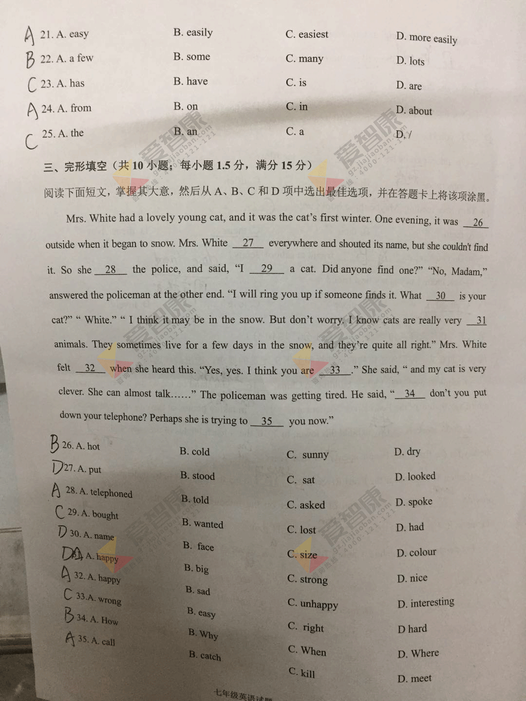 2017-2018学年广州黄埔区初一期末英语试题(图片版)(3)