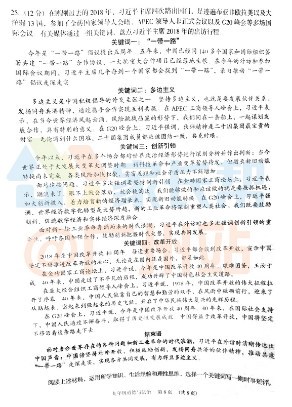 2018-2019学年广州荔湾区初三期末政治试题(图片版)(8)