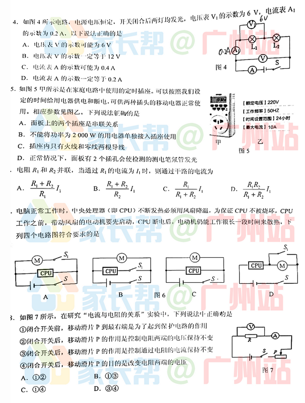 2018-2019学年广州白云区初三期末物理试题(图片版)(2)