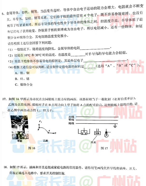 2018-2019学年广州白云区初三期末物理试题(图片版)(5)