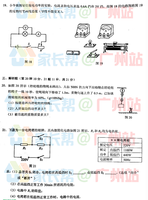 2018-2019学年广州白云区初三期末物理试题(图片版)(6)