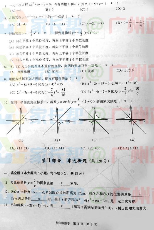 2018-2019学年广州白云区初三期末数学试题(图片版)(2)