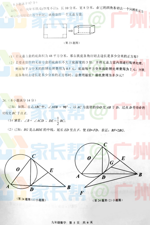 2018-2019学年广州白云区初三期末数学试题(图片版)(5)