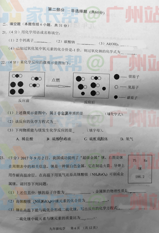 2018-2019学年广州荔湾区初三期末化学试题(图片版)(6)