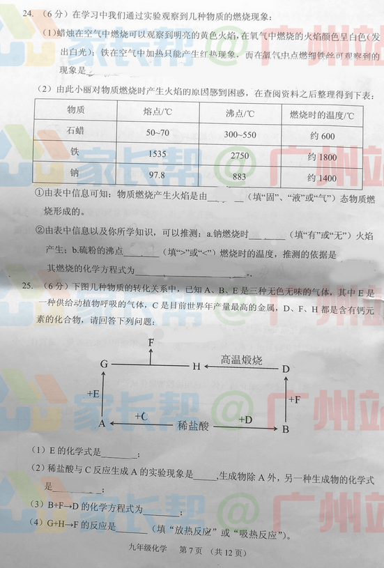 2018-2019学年广州荔湾区初三期末化学试题(图片版)(7)