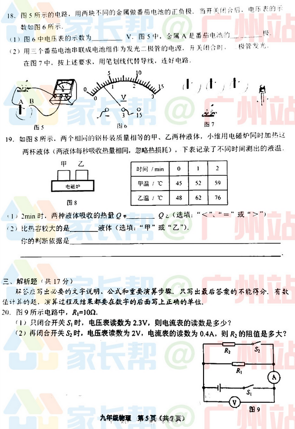 2018-2019学年广州海珠区初三期末物理试题(图片版)(5)