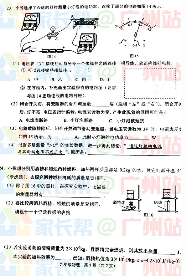 2018-2019学年广州海珠区初三期末物理试题(图片版)(7)