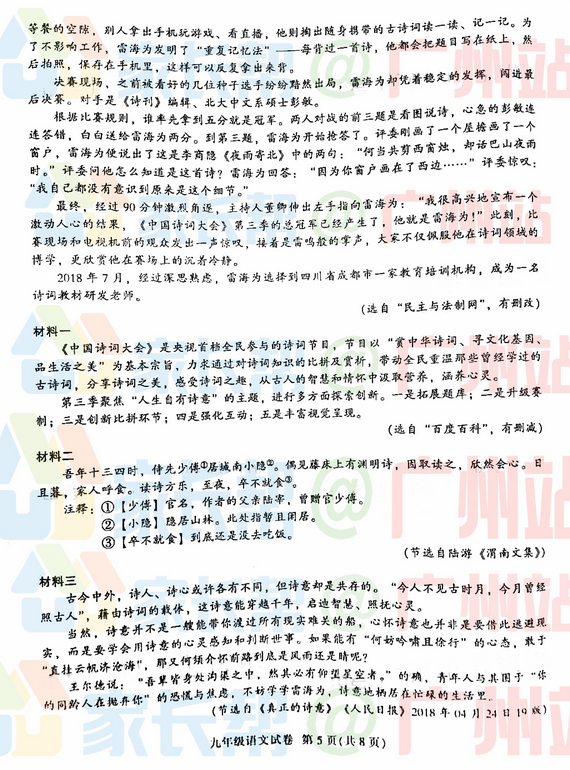 2018-2019学年广州越秀区初三期末语文试题(图片版)(5)